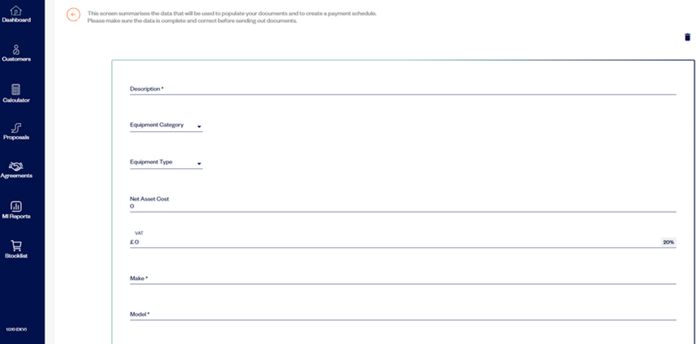 - Select ‘create new’ to create a new asset description that will be input on the documents.