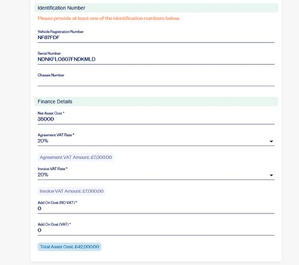 - Once you have input the 'net asset cost' the VAT can be calculated for you by clicking the “20%” button.